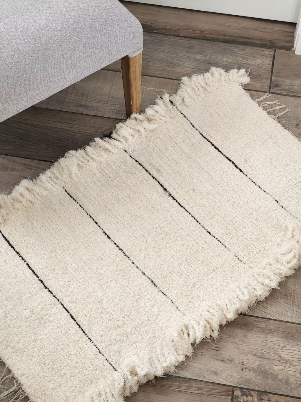 Descubrí la Alfombra de algodón con raya negra Emma 🖤, el detalle perfecto para renovar tus ambientes.