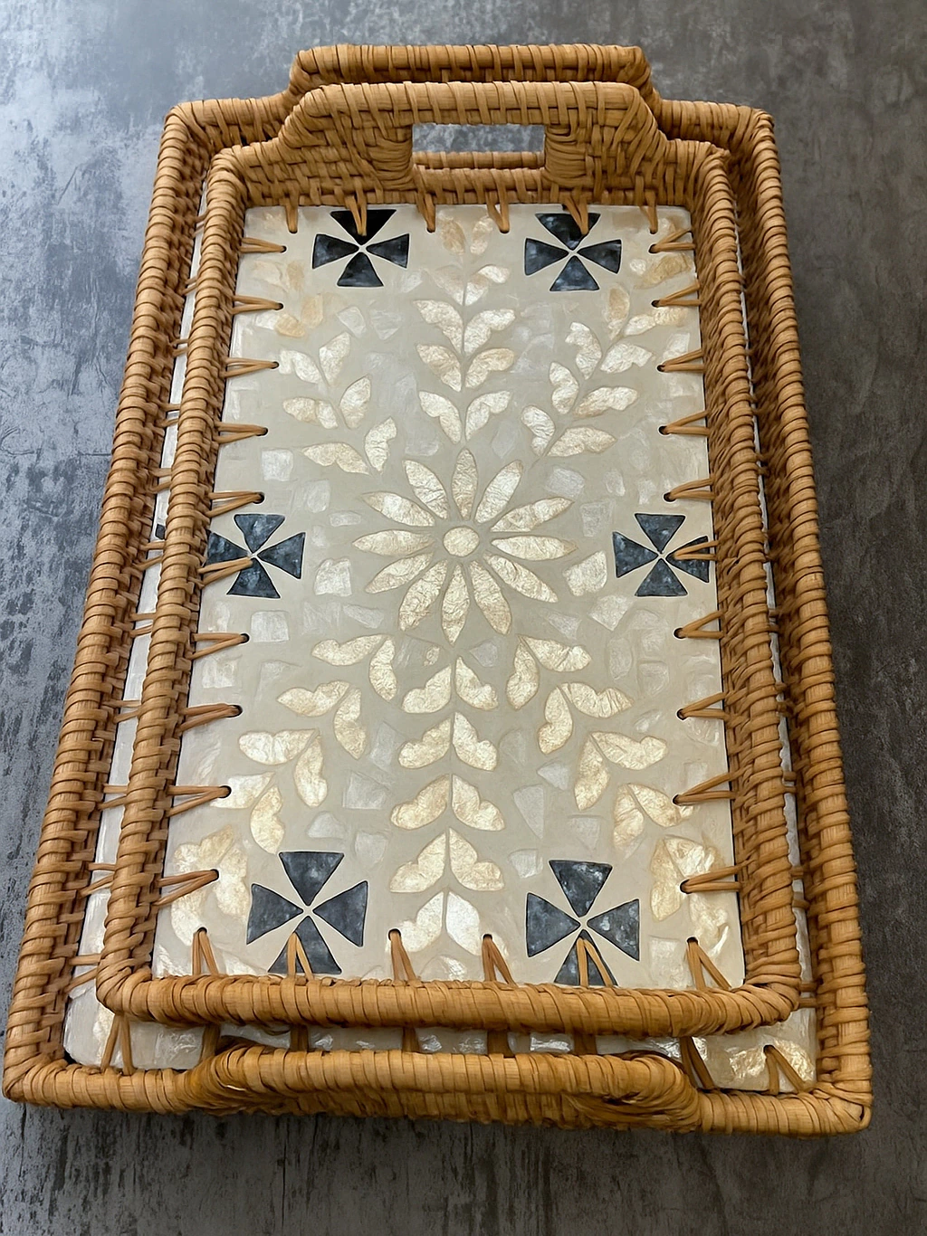 Bandeja flor rattan 🌸