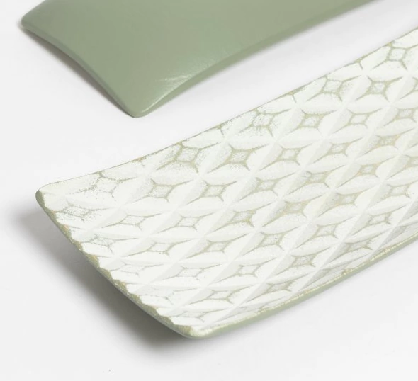 Perfecta para servir con estilo o decorar cualquier espacio. Con su delicado color verde claro y diseño sofisticado, esta bandeja es un complemento ideal para tu hogar. 🌟
