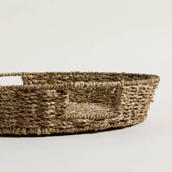 Hecha de fibra natural seagrass, esta bandeja es perfecta para sumar calidez, volumen y textura a tu mesa.