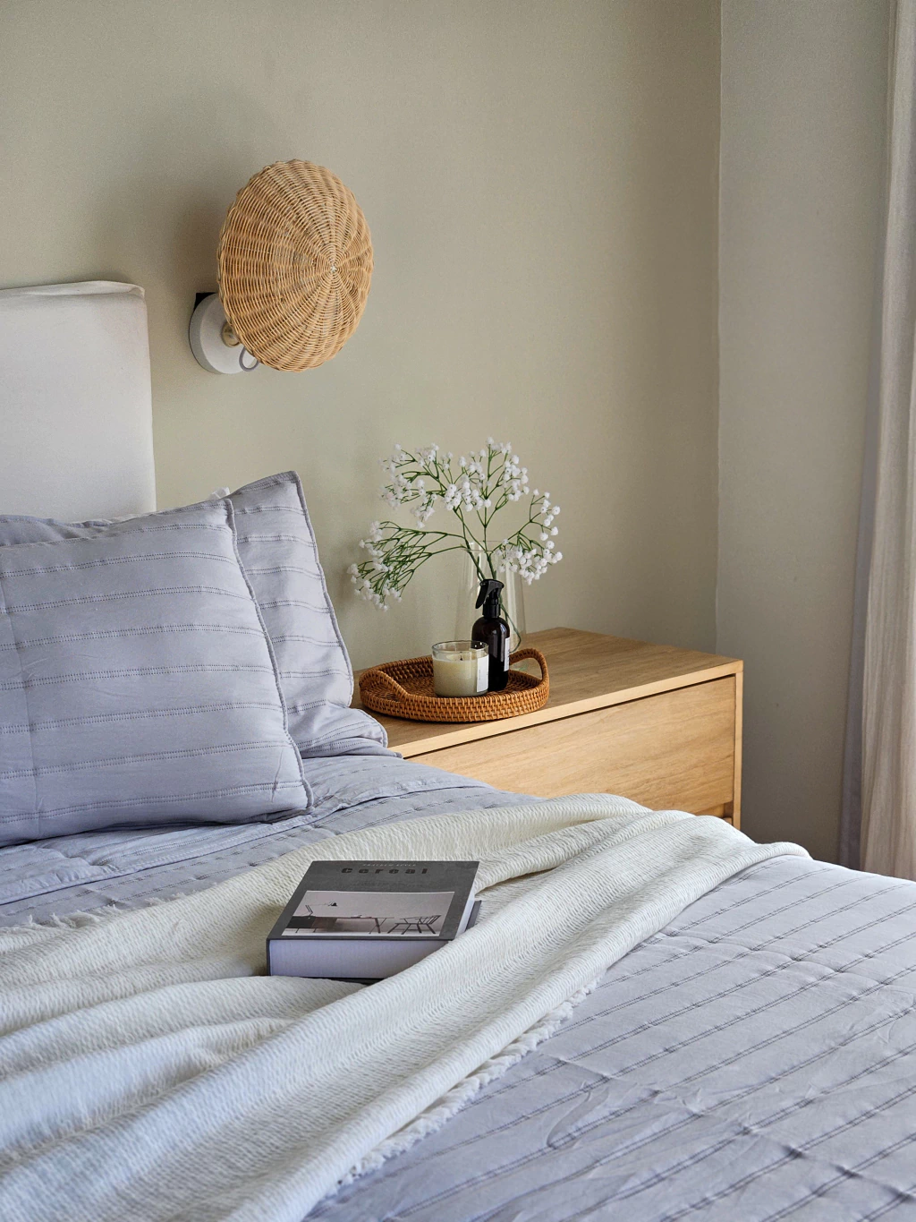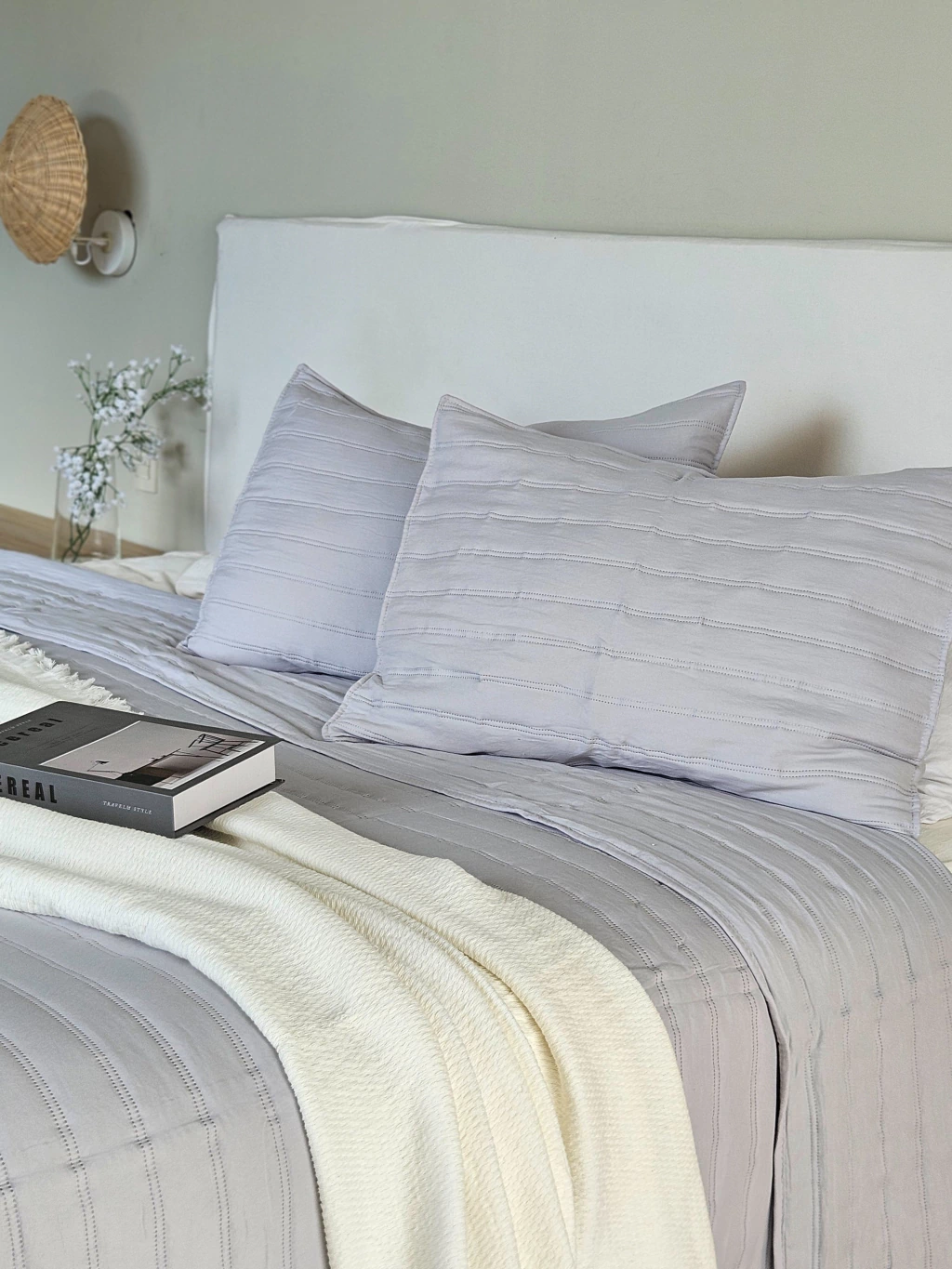 Dale un toque sofisticado y fresco a tu dormitorio con este acolchado de 230x250 cm, ideal para camas Queen. Incluye 2 fundas de almohada de 50x70 cm que completan el conjunto. El diseño gris combina fácilmente con cualquier decoración, aportando elegancia y confort. Perfecto para quienes buscan calidad y estilo en su descanso. ¡Renová tu habitación hoy!