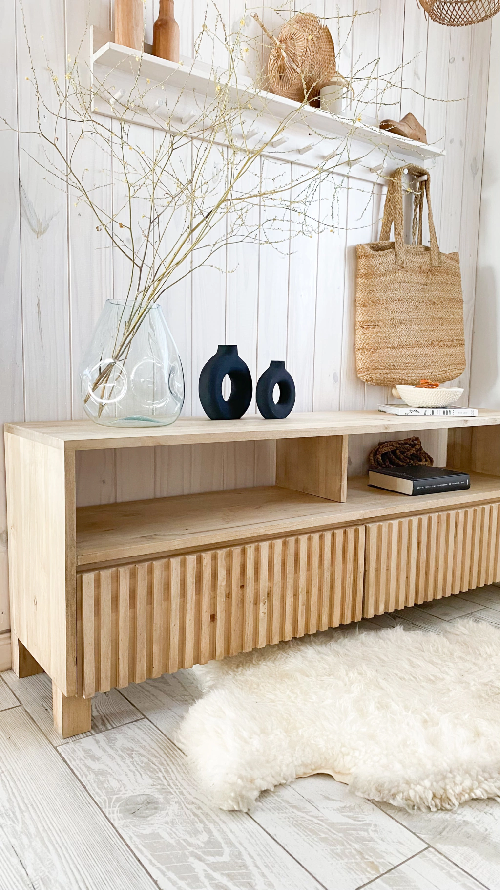 Rack de álamo macizo teñido color petiribi. Terminación laqueada