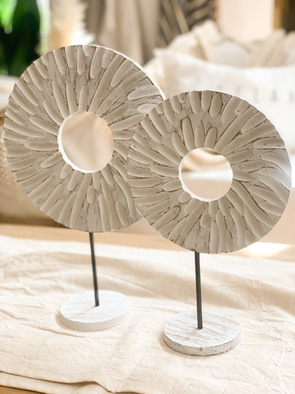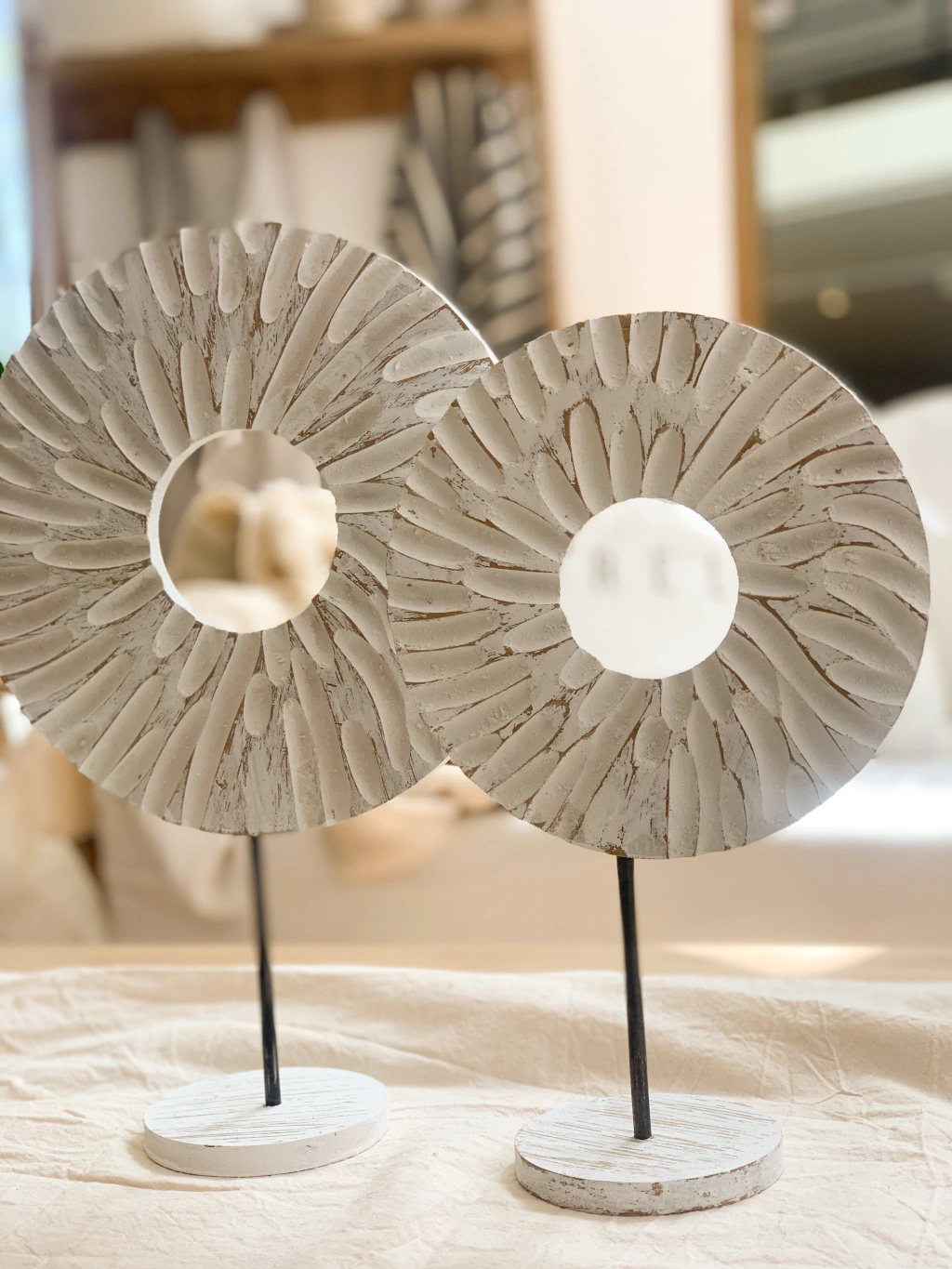 Set de 2 pedestales de madera tallada, la base puede ser redonda o rectangular.